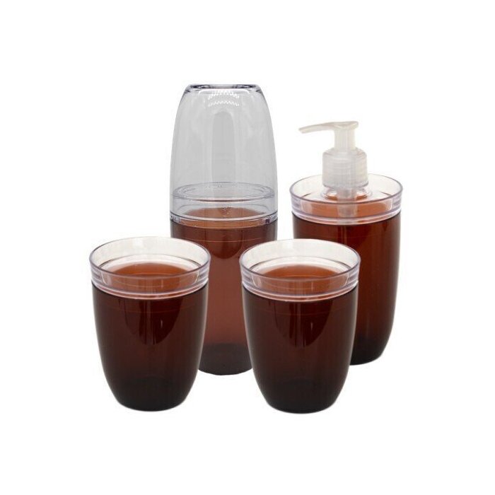 Kit 4 peças Âmbar, Porta Escovas, Dispenser de sabonete Líquido, Porta Algodão e Cotonetes