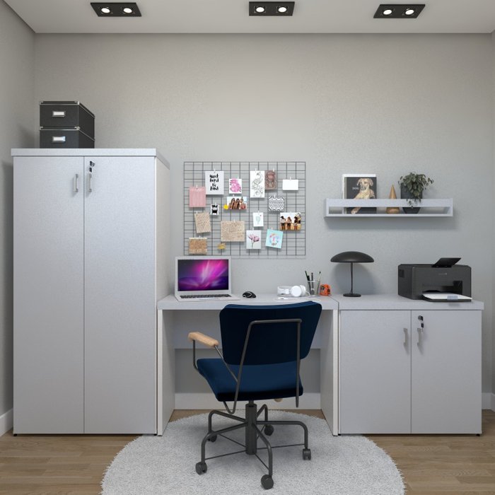 | Tipo de Conjunto de Escritório | Escrivaninha, Balcão e Armário |