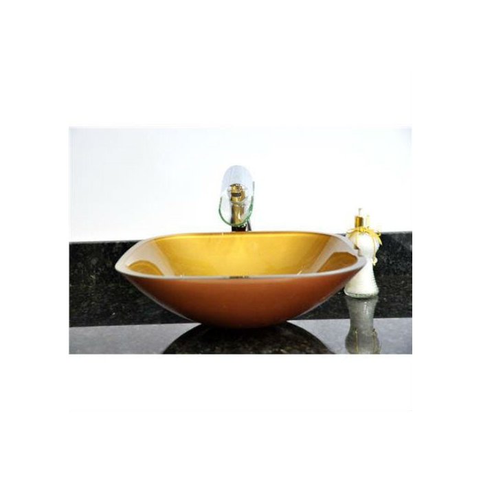 Kit 4 peças-cuba de vidro quadrada dourada+valvula click+torneira cascata+sifão