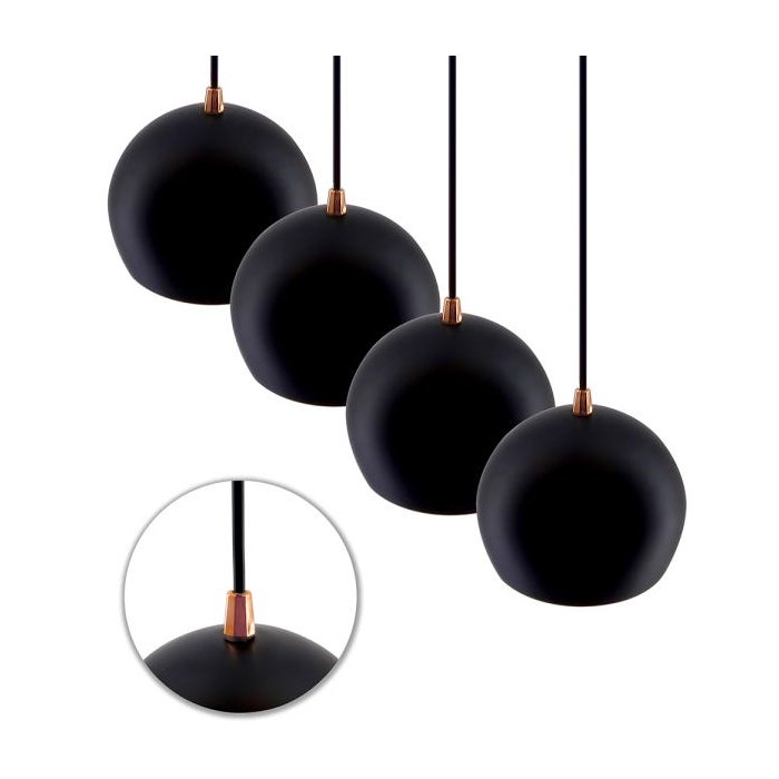 Kit 4 Pendentes Bola Preto acabamentos Cobre