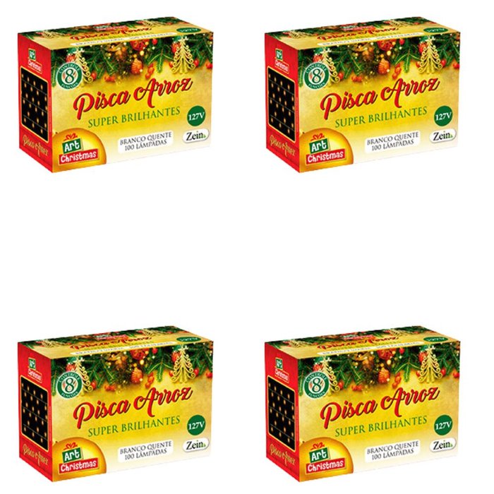 Kit 4 Pisca Pisca Arroz 100 Leds Branco Quente - 127v