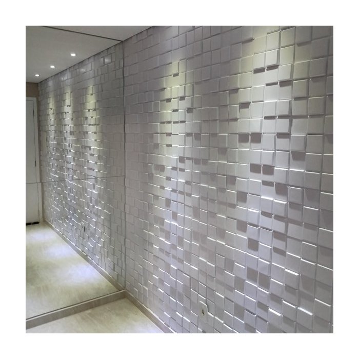 Kit 4 Placas 3D Parede Revestimento Alto Relevo Pixel Branca
