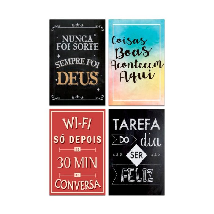 Kit 4 Placas Decorativas Frases Deus Wifi Feliz Mdf 20x30 cm