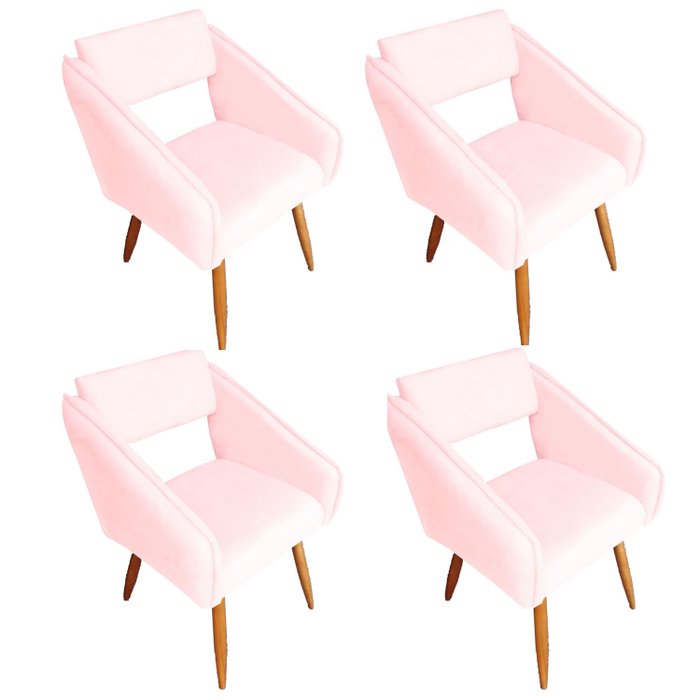 kit 4 poltrona/cadeira decorativa iara suede rosa bebê