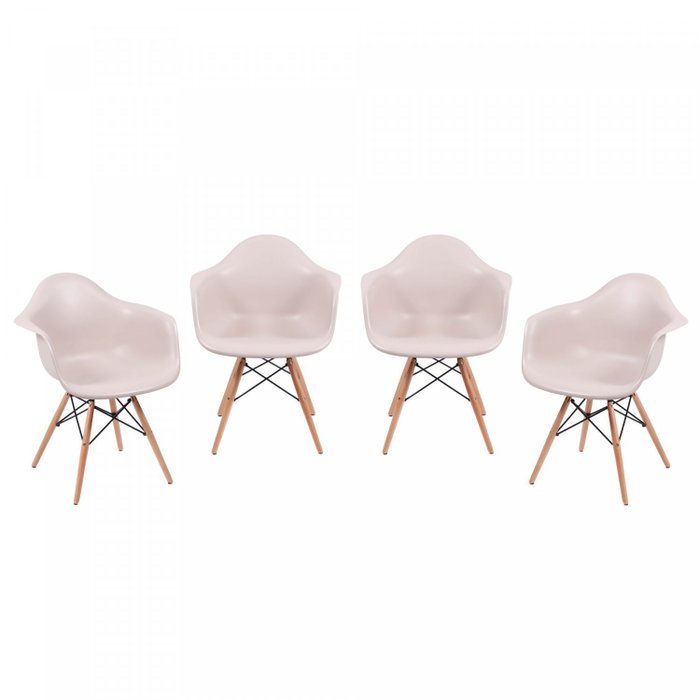 Kit 4 Poltronas/Cadeiras Com Braço Base Madeira Dkr Fendi