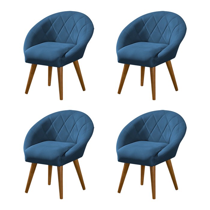 Kit 4 Poltronas Canastra Decorativa para Recepção Estofado Linho Azul Pés Palito