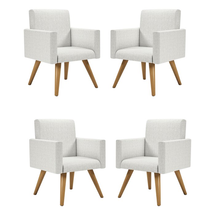 Kit 4 Poltronas Decorativa Cadeira Escritório Recepção Linho Cor:Linho Bege