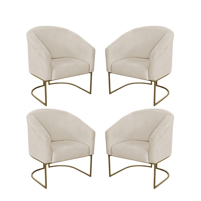 Kit 4 Poltronas Decorativa Luana Base Ferro Dourada Suede - Twdecora
