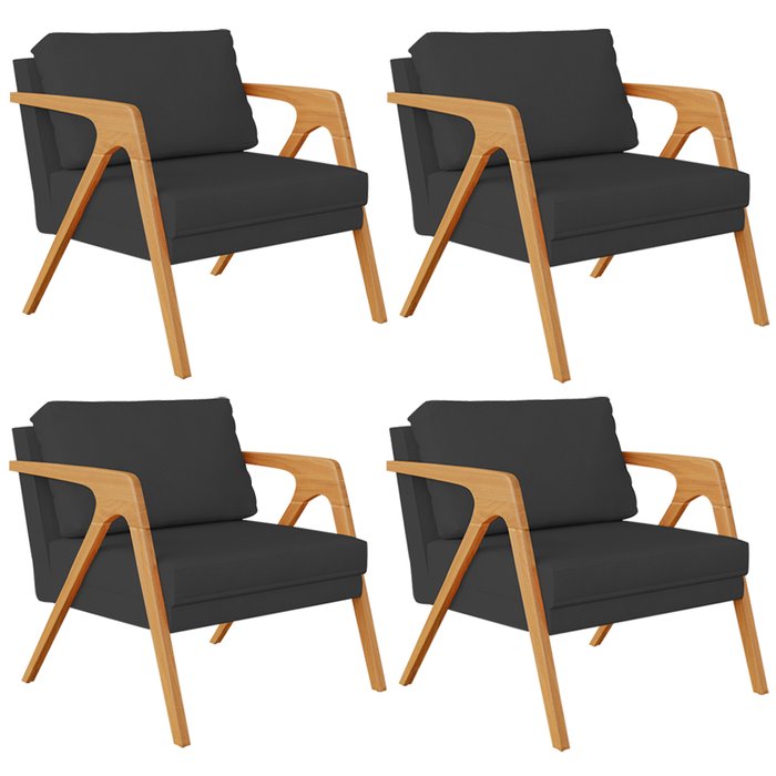 Kit 4 Poltronas Decorativa para Sala Estar Pietra Estrutura de Madeira L02 Suede Preto - Lyam