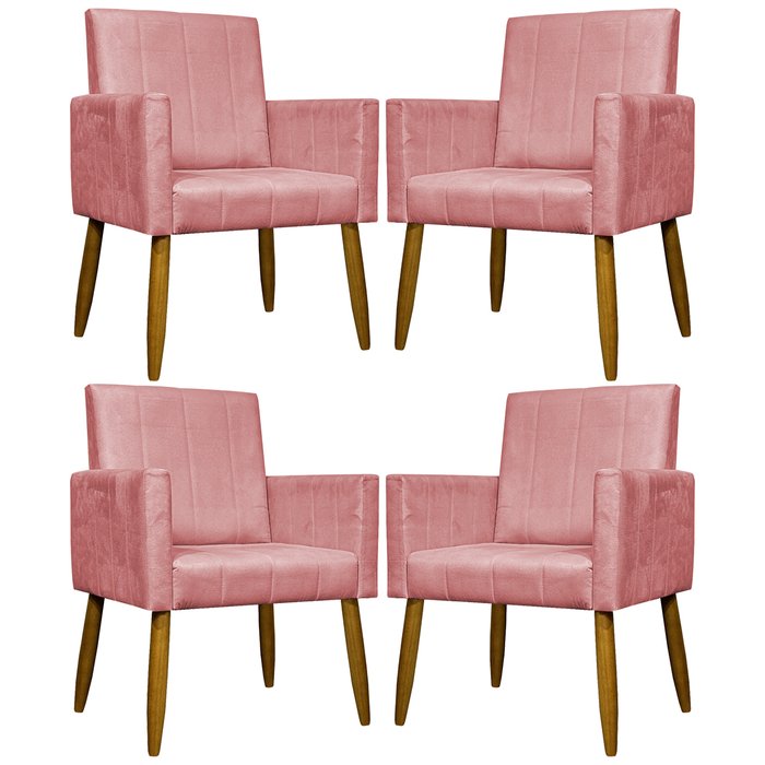 Kit 4 Poltronas Decorativas Mari Suede Pé Palito 30cm Castanho Rosa