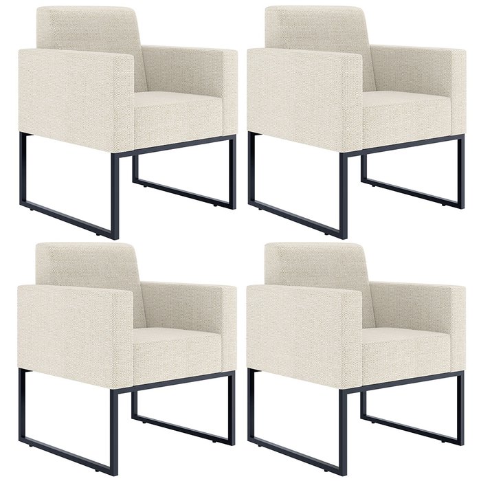 Kit 4 Poltronas Decorativas Sala e Recepção Base Fixa Metal Helô L02 Linho Champanhe - Lyam
