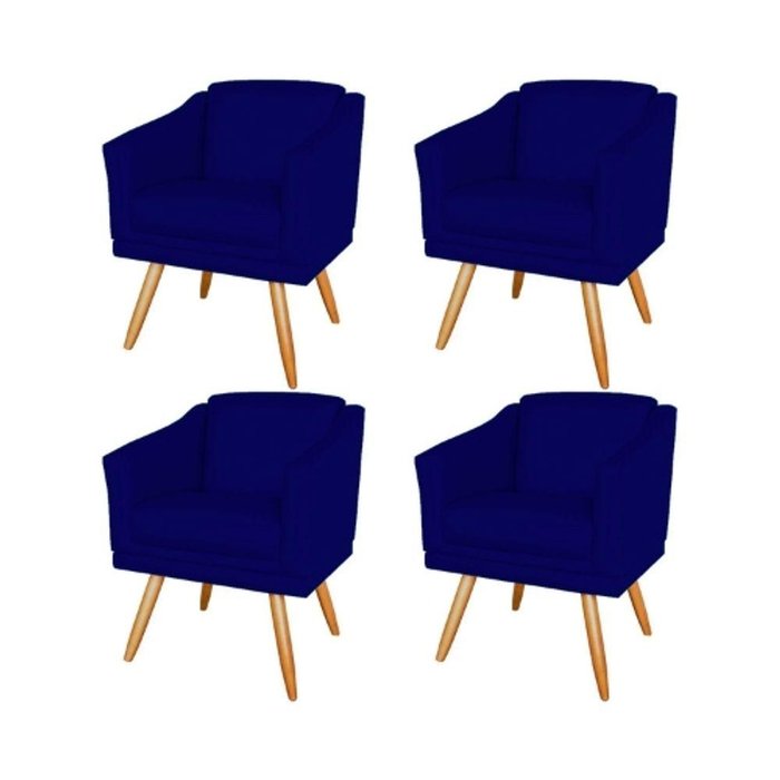 Kit 4 Poltronas Decorativas San Diego Sala De Estar Tecido Veludo Azul Marinho Kimi Decor