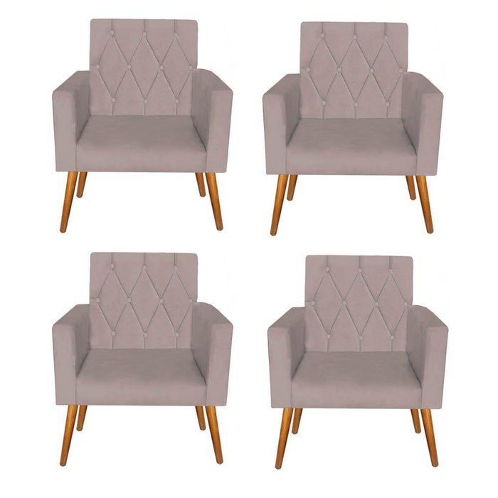 Kit 4 Poltronas Decorativas Thais Capitonê Suede Cappuccino - Móveis Mafer