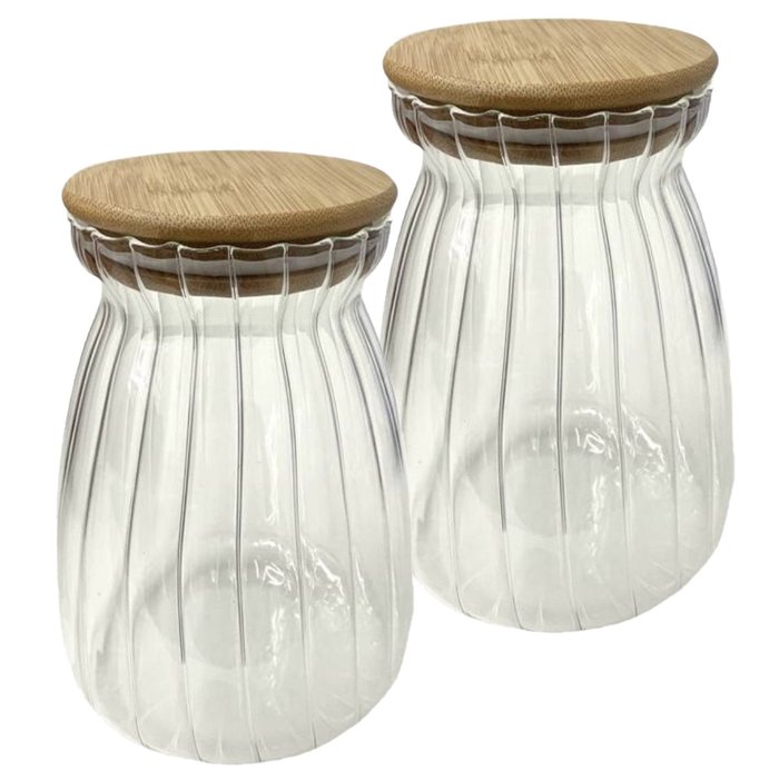 4 Pote Hermético Com Tampa De Bambu 1 litro;