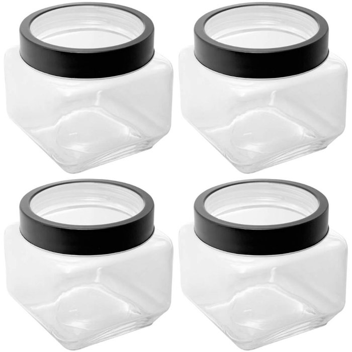 Kit 4 Potes 800ml Gastro Lyor Vidro Tampa Metal Preta Porta Mantimentos Quadrado