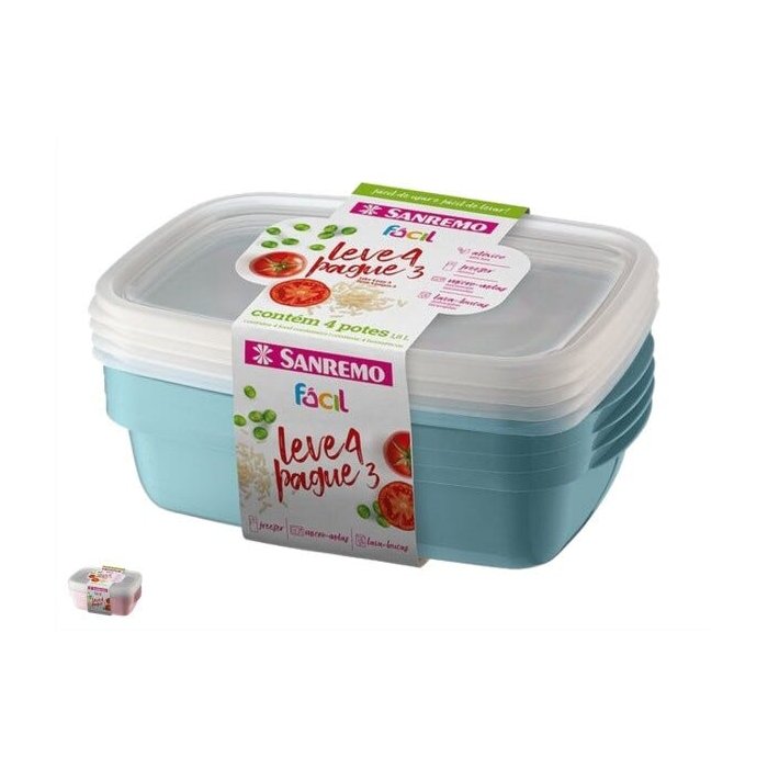 Kit 4 Potes Plásticos Sanremo 1,8l Colorido Saremo Fácil Tampa Transparente - Verde claro
