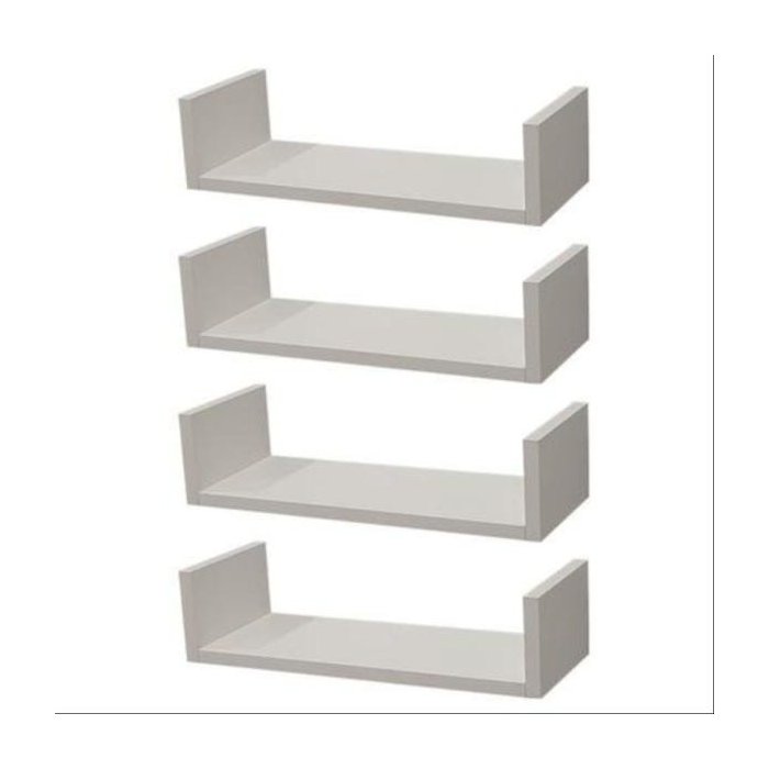 Kit 4 Prateleiras Nichos em U 40x25 MDF Branco com Suporte Flutuante Invisível