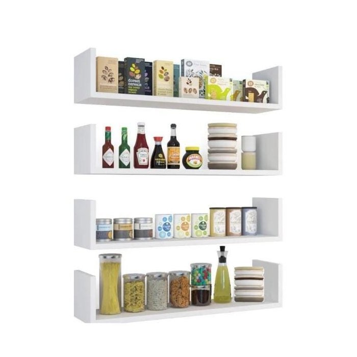 Kit 4 Prateleiras U Nicho Mdf 15Mm 60X15 Branca Com Suporte Branca