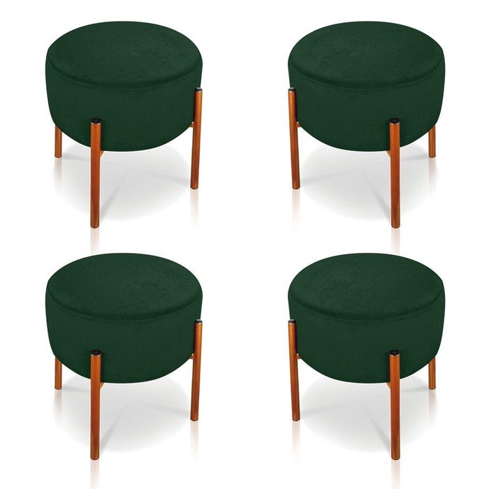Kit 4 Puffs Iron Suede Verde Base Metáica Cobre