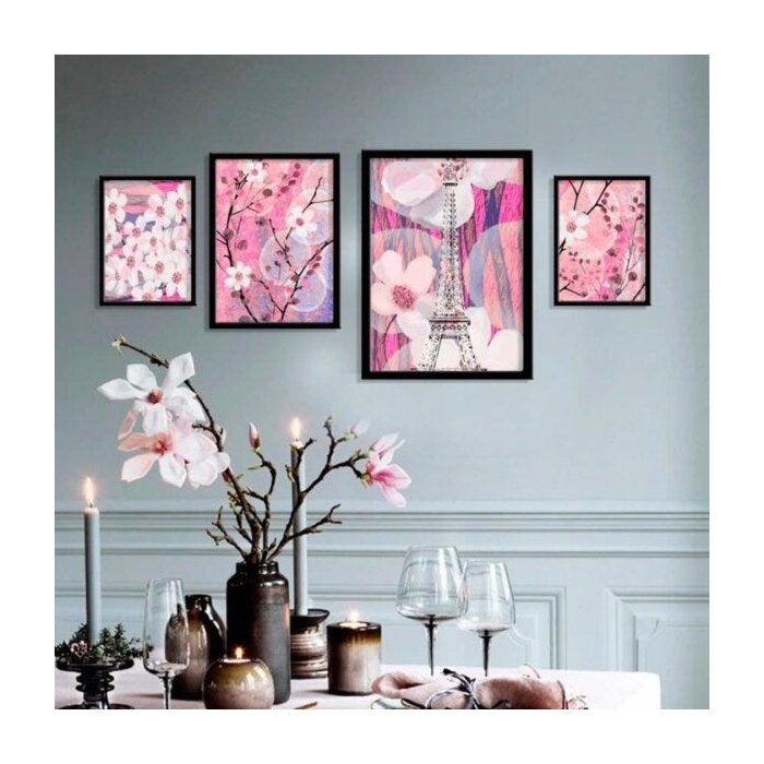 Kit 4 Quadros com Moldura Paris Modern Pink -