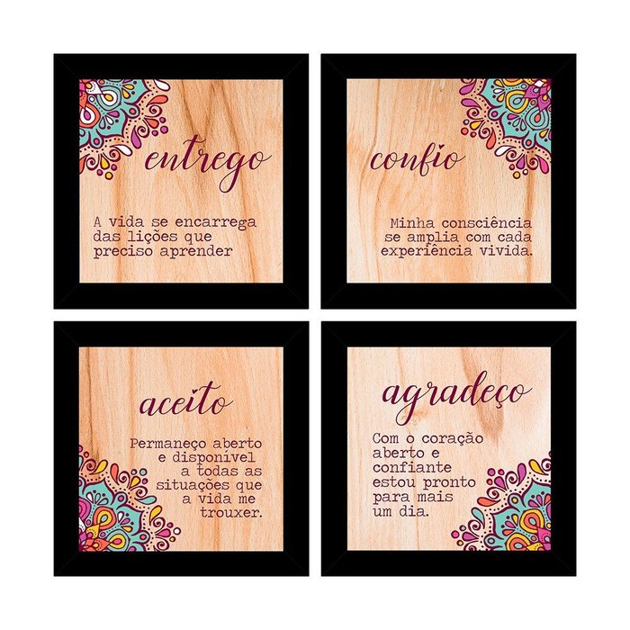 Kit 4 Quadros Decorativos Composê Aceito Agradeço Confio Entrego - PRETO