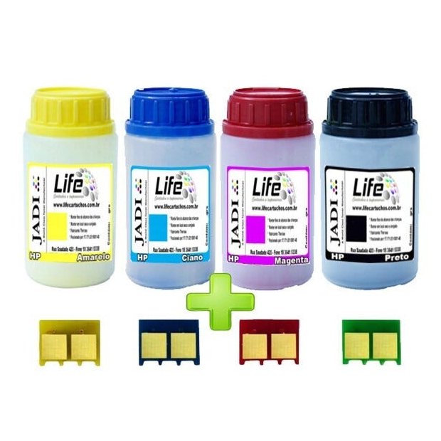 - Esse Kit Refil de Po de Toner tem 4 cores Preto, Ciano, Amarelo, Magenta e 4 Chips.