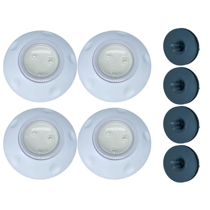 KIT CONTÉM:4 - REFLETOR ILUMINAÇÃO LED PISCINA DE FIBRA 9W RGB DONATTI4 - NICHO ADAPTADOR PARA PISCINA DE FIBRA (25mm)Com uma piscina iluminada, além de um espaço bonito você ainda pode criar um ambiente diferenciado e ampliar a sua diversão.Uma piscina iluminada também é esteticamente mais bonita e moderna, e é uma excelente forma de atualizar a sua decoração. Os efeitos visuais produzidos pelos jogos de luzes valorizam o ambiente e o deixam mais chamativo e atraente.Você ainda pode as cores de acordo com a sua preferência ou com a ocasião, caso realize algum evento em sua área externa..As combinações poderão ser previamente programadas ou ajustadas no momento em que você quiser.- Material : Lente: Policarbonato Transparente/Translúcido- Corpo: ABS- Vedação: Resina Epóx- Cabo: Cabo manga 4 vias com 2 metros de comprimento- Diâmetro: 9.5 cm- Profundidade do Refletor (corpo): 2 cm- Potência: 9W- Área de iluminação (na cor branca): 12m²- Ângulo de Abertura da lente: 150° IP68- Alimentação: 12vcc (RGB)- Consumo: 1A- Encaixe de Pino Pressão e rosca de 1/2REFLETOR ACOMPANHA NICHO PARA INSTALAÇÃO EM PISCINAS DE FIBRA COM CANO DE 25mm.