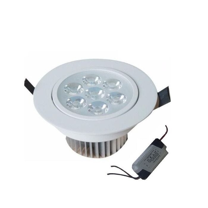 Spot LED Dicróica Redondo Embutir Branco Quente 3000k 7w Potência: 7W Cor: Branco Quente 3000K (Luz Amarela) Ângulo de abertura: 100 Luminosidade: 630 lúmens (pode variar um pouco) Equivalência: Incandescente 70W | Fluorescente 21W Tensão de entrada: Bivolt Automático (110v - 220v) Vida útil: 25.000 horas Modelo: Redondo Cor Moldura: Branco Peso: 200 gramas Diâmetro interno: 7,5cm Diâmetro externo: 10,5cm Acompanha Drive
