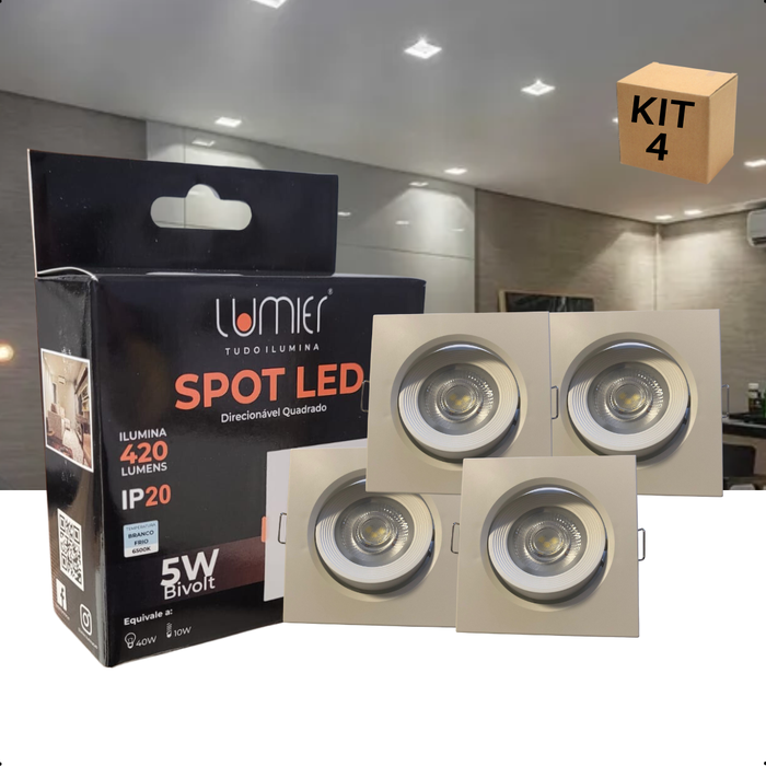 Kit 4 Spot Led Embutir 5w Luminaria de Teto Direcionável