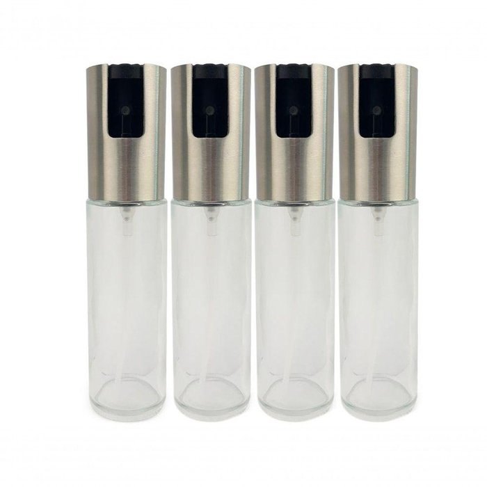 Kit 4 Spray Pulverizador Borrifador Dosador Azeite Vinagre Frasco de Vidro Acabamento Aço Inoxidá