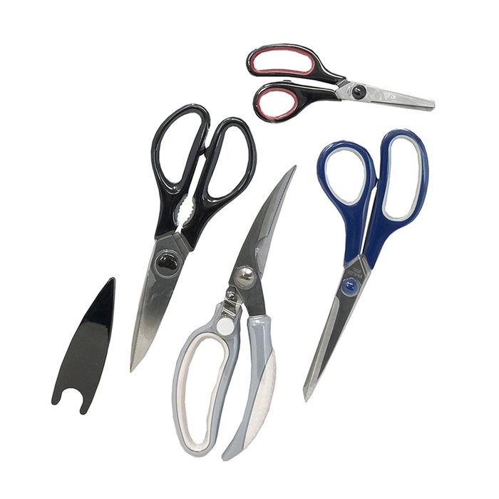 As tesouras de cozinha possuem lâminas de aço inoxidável endurecido de alta qualidade e cabo de plástico PP e TPR anatômico. Possui 2 tesouras multiuso e 2 tesouras de cozinha e 1 capa de tesouraMaterial:Aço inox e Plástico PP e TPRCor:Prata, Branco, Preto, Azul e vermelhoMedidas:Tesoura multiuso 5,5 polegadas: 14cmTesoura multiuso 8 polegadas: 22cmTesoura cozinha 8 polegadas: 21cmTesoura cozinha 9 polegadas: 24cmInstruções de Cuidado: Lavar com detergente neutro, esponja macia e secar imediatamente.Não usar esponja de aço.Não utilizar produtos abrasivos.Pode ir à lava-louças872MAB25427