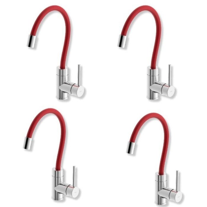 Kit 4 Torneira Monocomando para Cozinha de Mesa Bica Flexível Incepa Colors Vermelho/Cromado