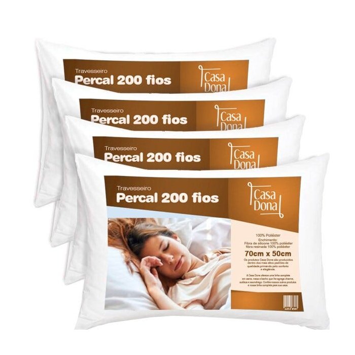 Kit 4 Travesseiro Percal 200 Fios Siliconada Sono Tranquilo Casa Dona