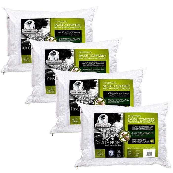 Kit 4 Travesseiros Ions de Prata Lavável Fibrasca 50x70 cm