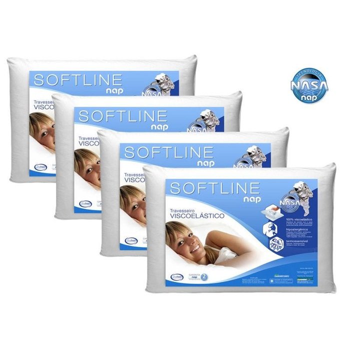 04 Travesseiros Nasa Nap Softline - Perfil Alto 15 Cm