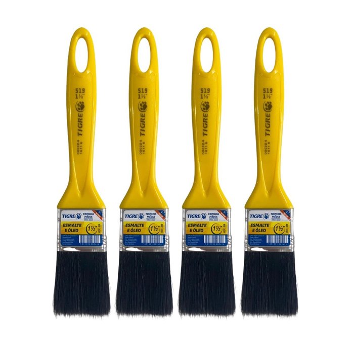 Kit 4 Trincha Pincel Pintura Esmalte Óleo 1.1/2'' Tigre