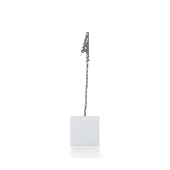 Kit contendo 4 unidades de Porta recado ou lembrete formato jacaré brancos com cabo metálico, formato quadrado com bordas retas.