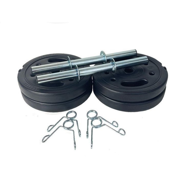 Kit composto de 20 kg de anilha musculação Vazadas de Polietileno ;