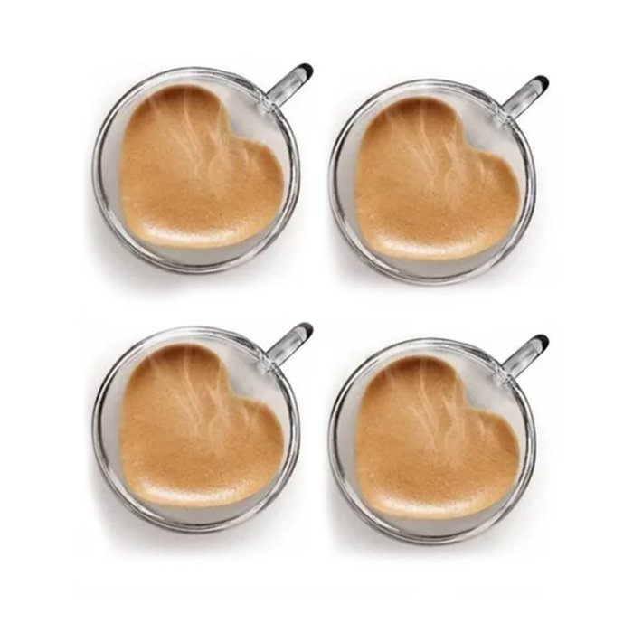 Kit 4 Xícaras Vidro Borossilicato Parede Dupla Coração 80ml