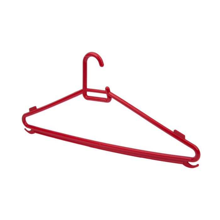 Cabide adulto básico de plástico reciclável Vermelho - Kit com 40 unidades. Tamanho unitário aproximado: 37x7x0,7cm. Produto Reciclável e Atóxico. Composição Resina Plástica e Pigmentos. Indústria Brasileira