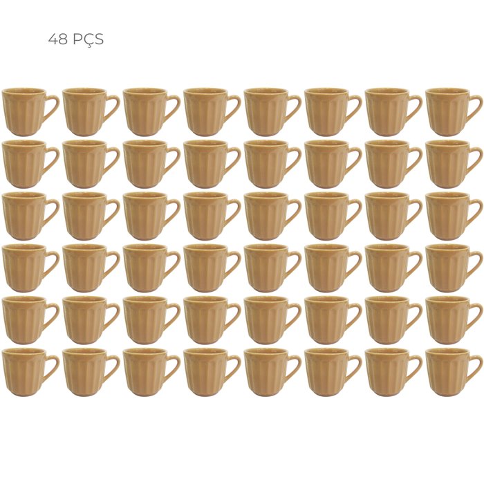 Kit 48 canecas canelada redonda 150ml de Porcelana Caramelo