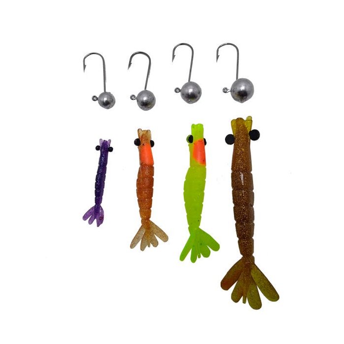 Kit 4Pçs Camarão Artificial + 4Pçs Jig Head - Fishing Sports