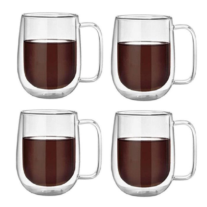 | Mpn | Kit 4x caneca vidro duplo xícara parede dupla café chá 260ml |
