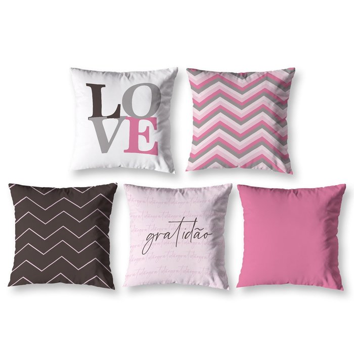 Kit 5 Almofadas Cheias 40cm X 40cm Decorativas Estampadas Digital Sala Sofá Quarto Chevron Rosa