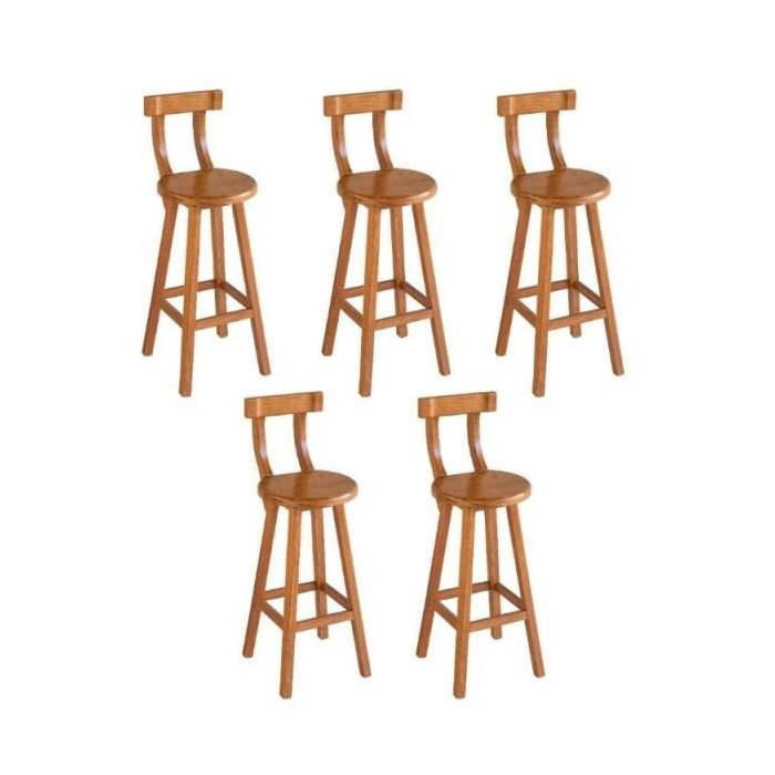 Kit 5 Bancos Altos Girafa Com Encosto Em Madeira De Lei Maciça