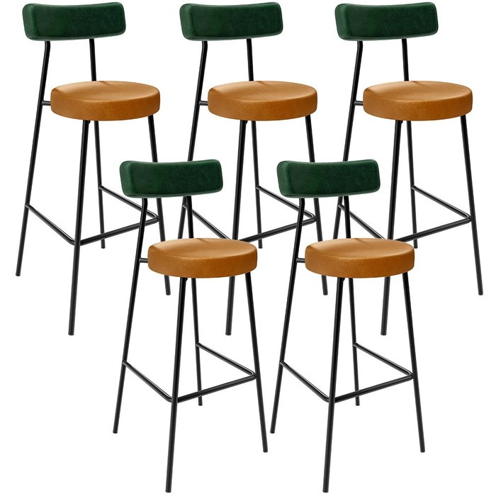 Kit 5 Banquetas Alta Cozinha Sala Jantar Milão L02 Facto Verde Musgo Couríssimo Whisky - Lyam Decor