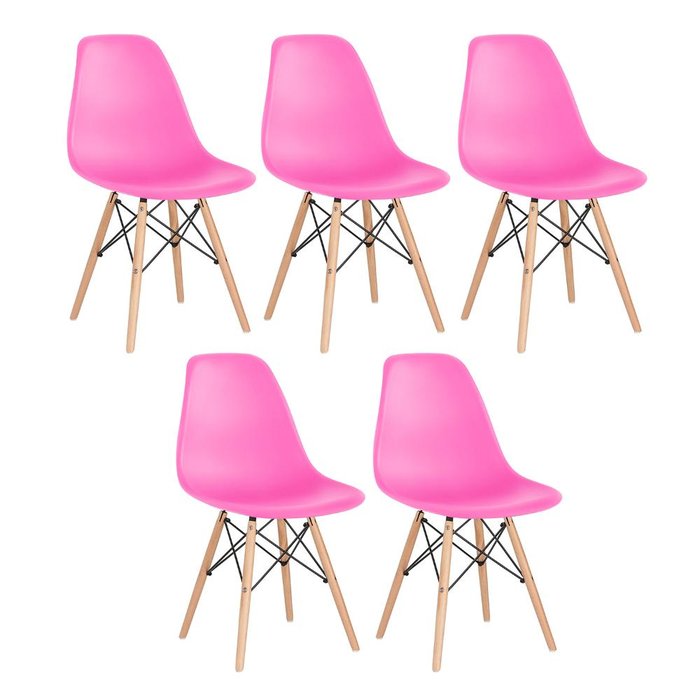 Kit 5 Cadeiras Charles Eames Eiffel Dsw - Base de Madeira Clara - Rosa Pink