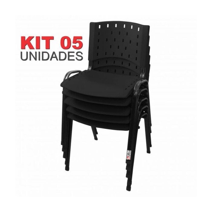 Kit 5 Cadeiras Fixa Singolare Assento Encosto Plástico Preto
