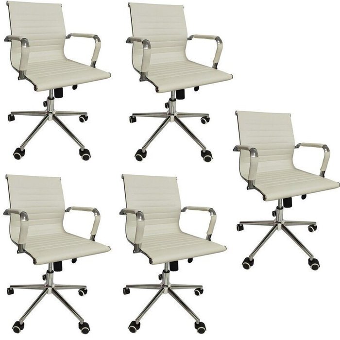 Kit 5 Cadeiras Office com Rodízio e Encosto Esteirinha Baixa Branco
