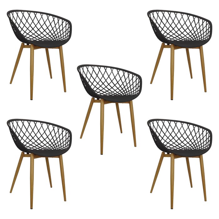 Kit 5 Cadeiras Poltrona Clarice Sidera Nest Web com Apoio de Braço Preto